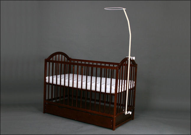 - Опора для балдахина – несложное устройство, которое подходит для любой кроватки.