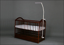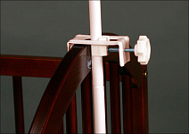 - Опора для балдахина имеет очень удобную и безопасную для мебели систему крепления к кровати ребенка. Она крепится к спинке кровати или боковой решетке за нижнюю или верхнюю планку.