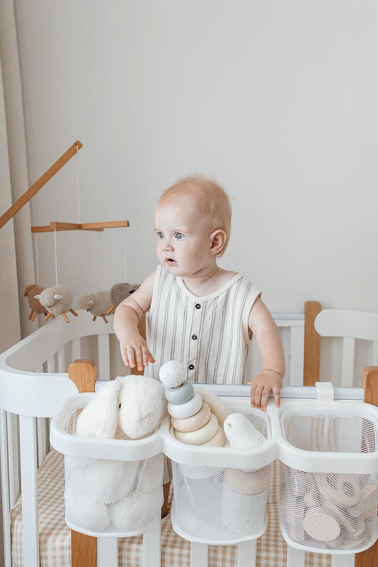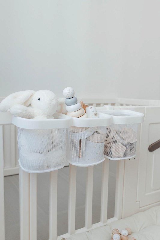 Органайзер для хранения подвесной UNIX Kids - универсальный предмет для хранения и порядка в вашем доме. Органайзер имеет три открытые вместительные корзины, в которых удобно хранить и легко найти как детские принадлежности и игрушки, косметические средства, так и любые другие мелочи, необходимые вам под рукой. Фиксирующие крючки органайзера сделаны из пластика шириной 5 см для наилучшего крепления на спинке детской кроватки, в ванной комнате или рядом с туалетным столиком. Так же органайзер можно разместить на стенке любой серии манежей UNIX Kids, что бы ребенок мог самостоятельно вынимать и убирать любимые игрушки!