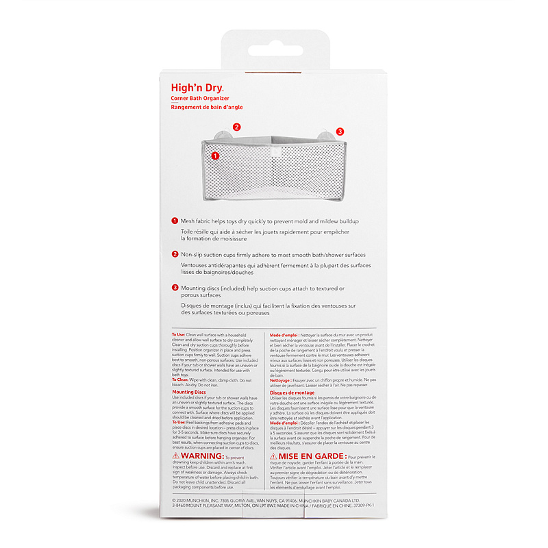 Нет необходимости ограничивать веселье, если вместо этого можно загнать беспорядок в угол! Munchkin High’n Dry - это удобное решение для хранения растущей коллекции детских игрушек для ванн, брызгалок, мелков и многого другого.