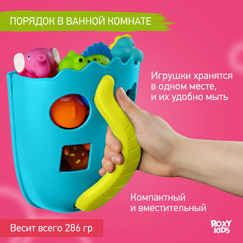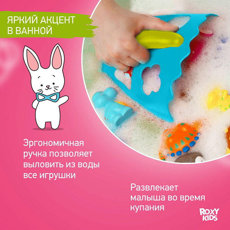 - практичная ручка и ковшевидная форма органайзера позволяют без труда выловить из воды все игрушки