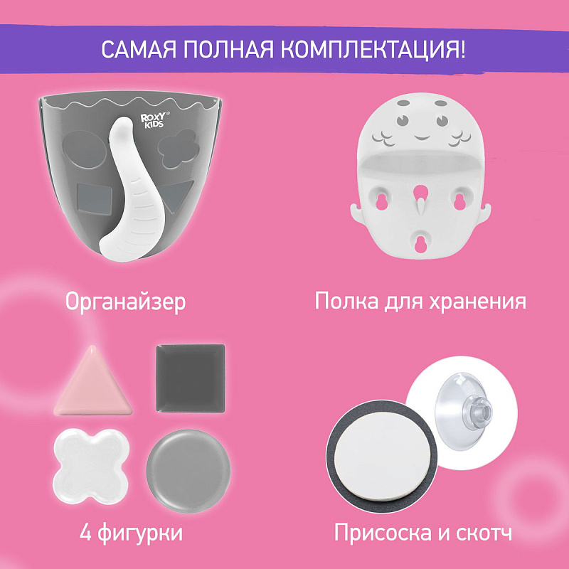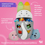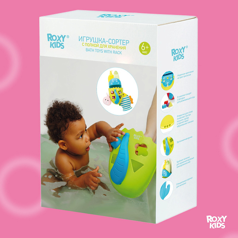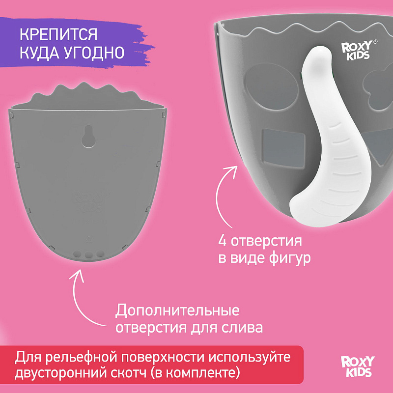 Органайзер с полкой для хранения игрушек и банных принадлежностей DINO от ROXY-KIDS является улучшенной версией стандартного органайзера. На дополнительную полку в конструкции можно поставить шампунь и гель для душа, а на крючки по бокам повесить мочалки. Если убрать полку, то при помощи органайзера можно быстро собрать все игрушки из воды. Органайзер надежно крепится на любые гладкие поверхности при помощи трех присосок, которые есть в комплекте. Повесьте базу в удобное место и все необходимое будет у вас под рукой. Отверстия для слива помогают быстро осушить органайзер и препятствуют образованию плесени. Соответствует стандартам безопасности товаров для детей. В ассортименте есть несколько цветов.