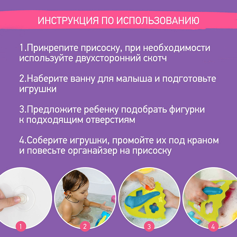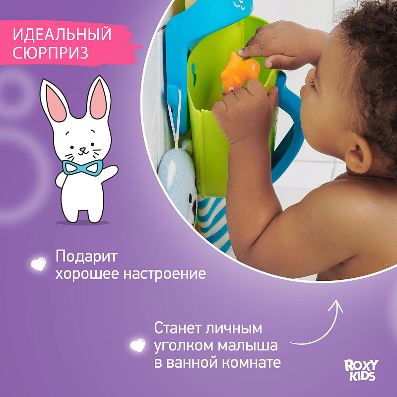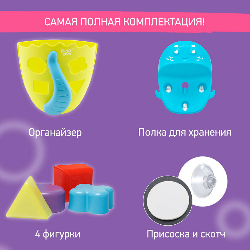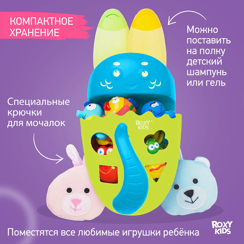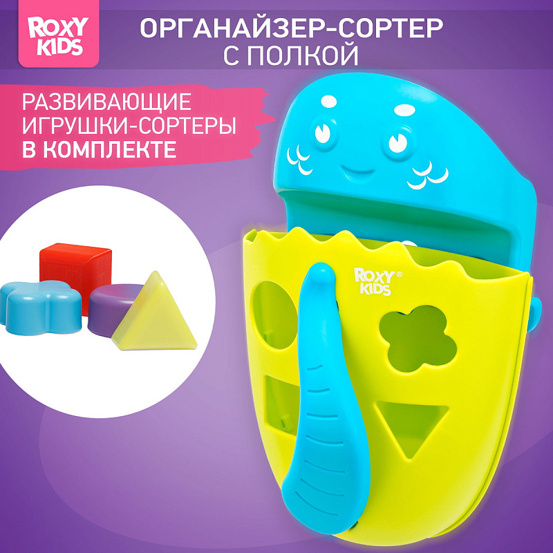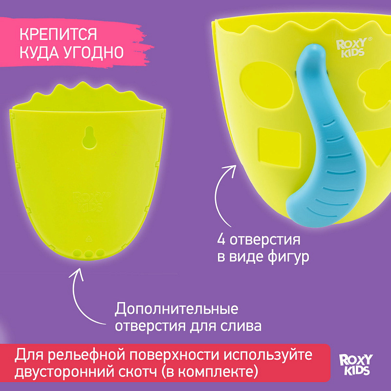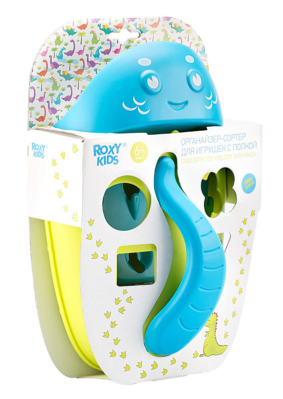 Органайзер с полкой для хранения игрушек и банных принадлежностей DINO от ROXY-KIDS является улучшенной версией стандартного органайзера. На дополнительную полку в конструкции можно поставить шампунь и гель для душа, а на крючки по бокам повесить мочалки. Если убрать полку, то при помощи органайзера можно быстро собрать все игрушки из воды. Органайзер надежно крепится на любые гладкие поверхности при помощи трех присосок, которые есть в комплекте. Повесьте базу в удобное место и все необходимое будет у вас под рукой. Отверстия для слива помогают быстро осушить органайзер и препятствуют образованию плесени. Соответствует стандартам безопасности товаров для детей. В ассортименте есть несколько цветов.