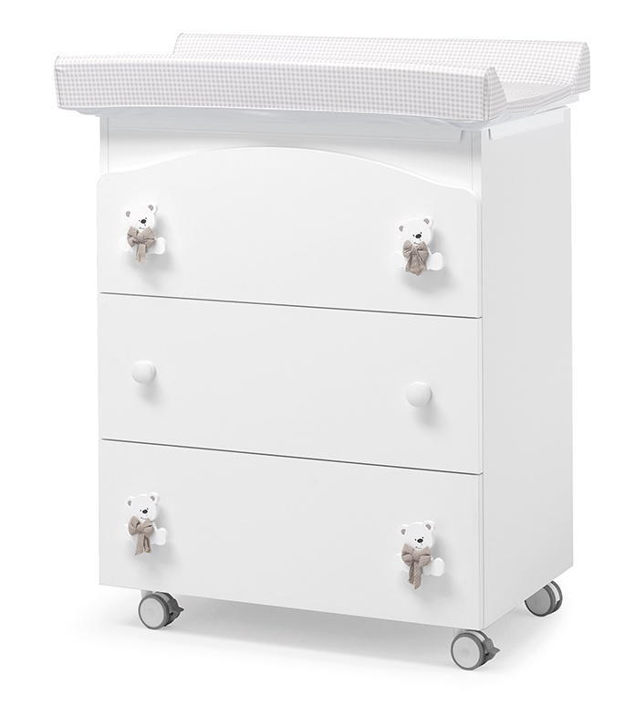 Пеленальный комод Erbesi Tato – это стильное и функциональное решение для родителей новорожденного. Его очаровательный дизайн, украшенный фигурными ручками в виде милых медвежат, моментально привлекает внимание. Три вместительных ящика, скрытые за фасадами из высококачественного материала, предоставляют достаточно места для хранения детских вещей – от подгузников и пеленок до кремов и игрушек. Это позволяет держать все необходимое под рукой, экономя время и силы молодых родителей, которые особенно ценны в первые месяцы жизни малыша.