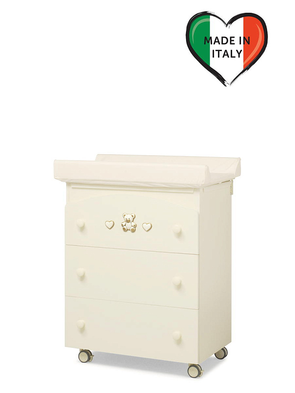 Пеленальный комод Erbesi Tippy Jolie – это функциональная и стильная мебель, которая станет незаменимым помощником для родителей в уходе за ребенком. Этот комод от известного итальянского бренда отличается своим изысканным дизайном с объёмной аппликацией в виде очаровательного медвежонка с сердечками, что принесет в детскую комнату атмосферу уюта и тепла.