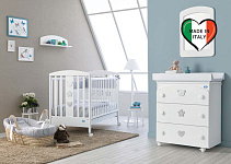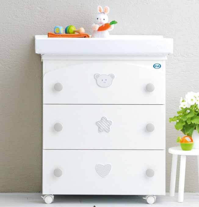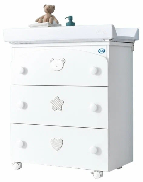 Пеленальный комод Pali Birillo оснащен анатомической ванночкой для детей первого года жизни и удобным пеленальной доской с защитными бортиками. Эти дополнительные детали не нарушают привлекательность интерьера детской комнаты, но существенно облегчают маме уход за малышом.