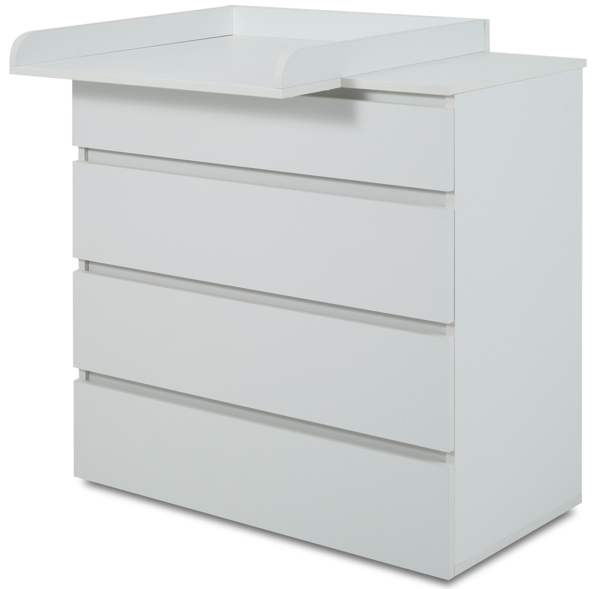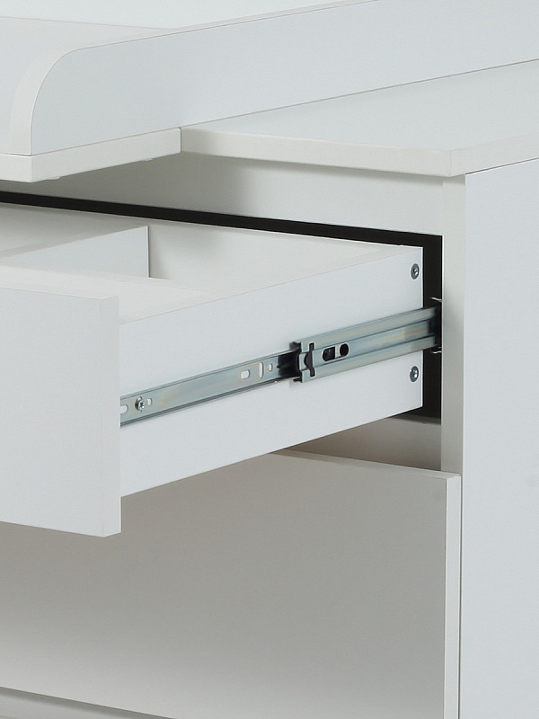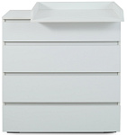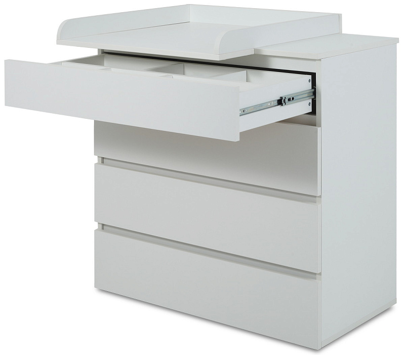 комод дополнен накладкой, превращающей его в полноценный пеленальный столик. Накладку можно установить в двух положениях - слева и справа.