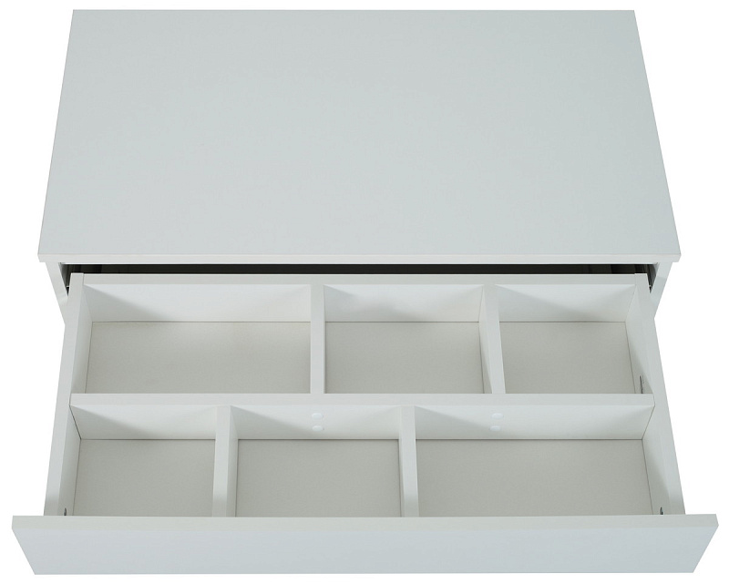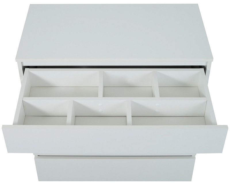 верхний ящик комода поделен на 6 разноформатных секций, куда так удобно сложить все необходимые вещи для ухода за младенцем (подгузники, одноразовые пеленки, детскую косметику для тела)