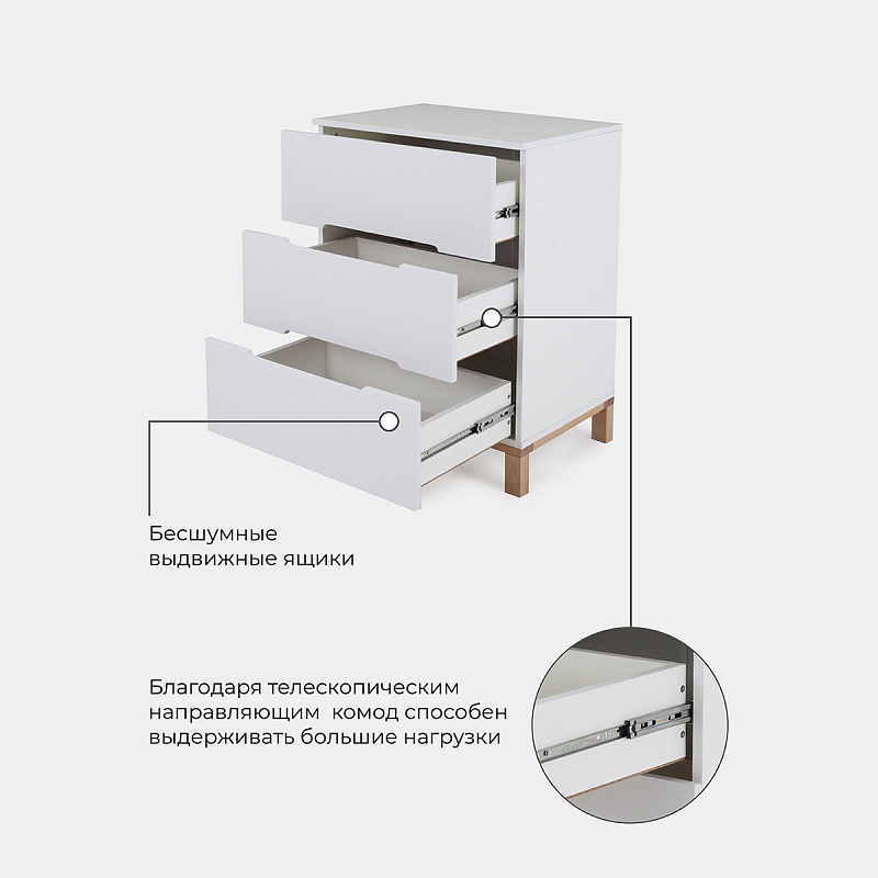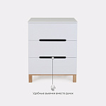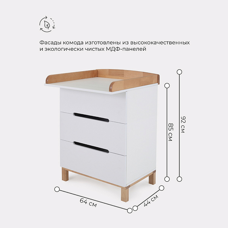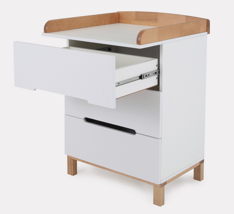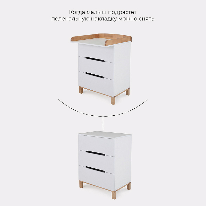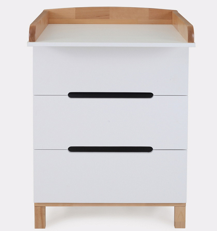 Пеленальный комод, выполненный в лаконичном скандинавском стиле, станет настоящим украшением детской комнаты и выдержит серьезные нагрузки. Вместительные выдвижные ящики бесшумны - они не потревожат спящего малыша. Комод имеет бортик, превращающий его в полноценный пеленальный столик.