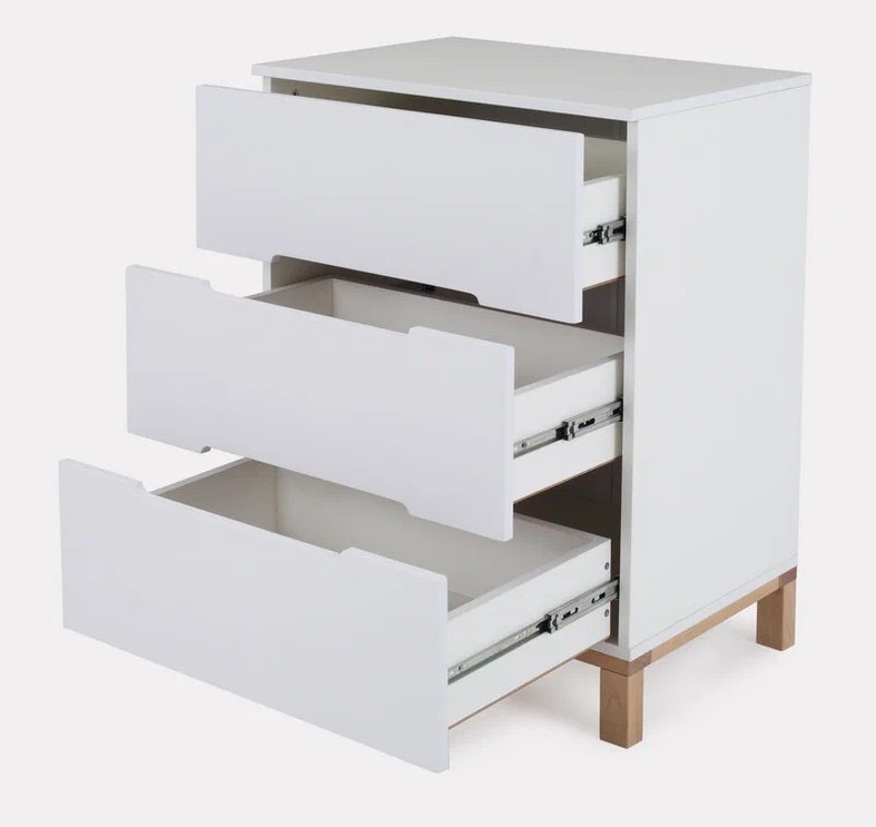 Пеленальный комод, выполненный в лаконичном скандинавском стиле, станет настоящим украшением детской комнаты и выдержит серьезные нагрузки. Вместительные выдвижные ящики бесшумны - они не потревожат спящего малыша. Комод имеет бортик, превращающий его в полноценный пеленальный столик.