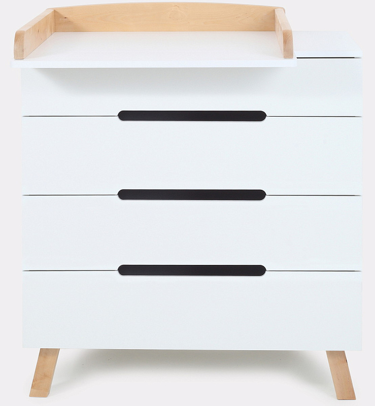конечно же, комодик имеет бортик, превращающий его в полноценный пеленальный столик. Более того, можно менять положение пеленального бортика, устанавливая его правее или левее на поверхности комода.