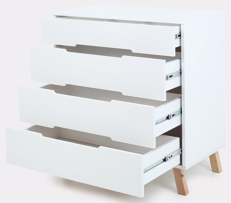 к тому же ящики дополнены специальными телескопическими направляющими, благодаря которым комод способен выдерживать большие нагрузки на протяжении длительного времени
