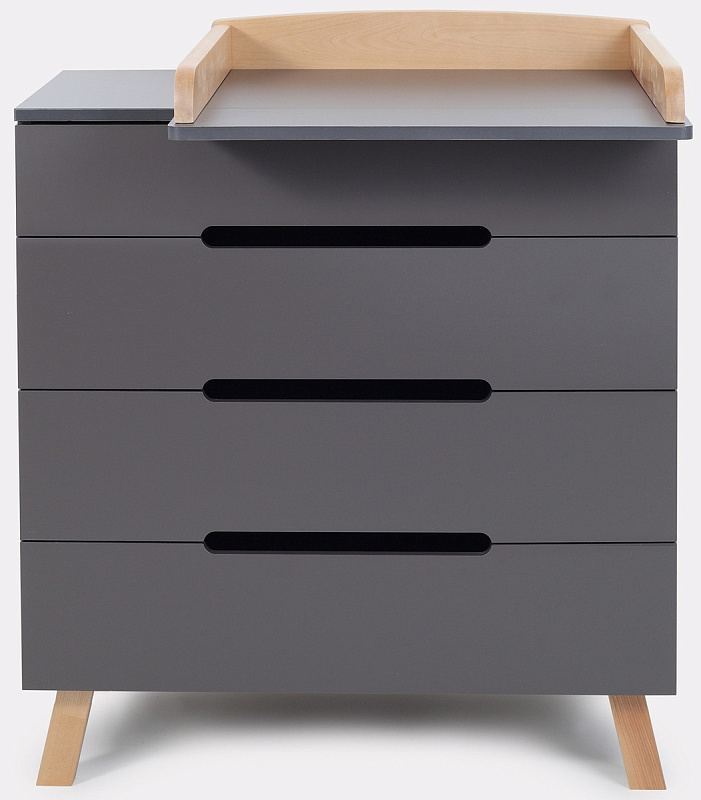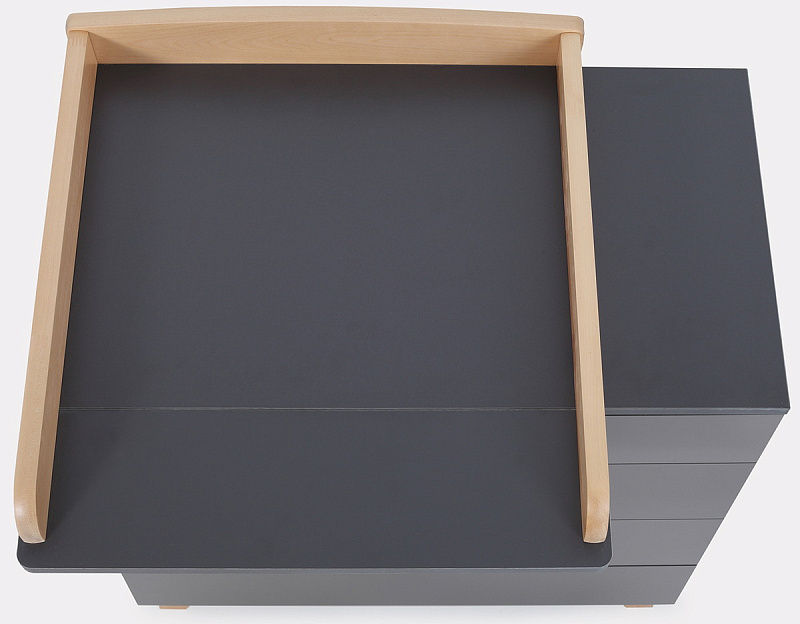 конечно же, комодик имеет бортик, превращающий его в полноценный пеленальный столик. Более того, можно менять положение пеленального бортика, устанавливая его правее или левее на поверхности комода.