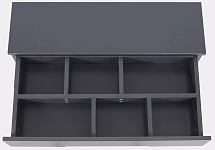 верхний ящик комода поделен на 6 разноформатных секций, куда так удобно сложить все необходимые вещи для ухода за младенцем (подгузники, одноразовые пеленки, детскую косметику для тела)