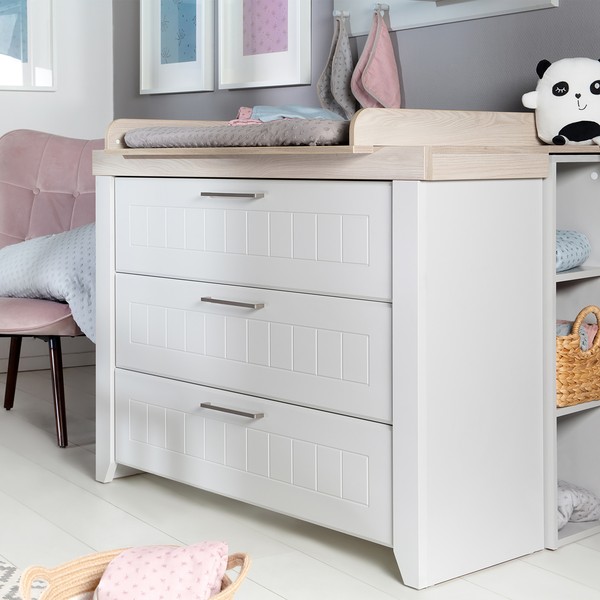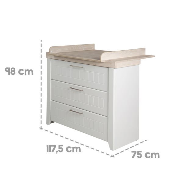 - Пеленальный комод Helene оснащен съемной пеленальной поверхностью, которая имеет комфортную высоту 90 см.