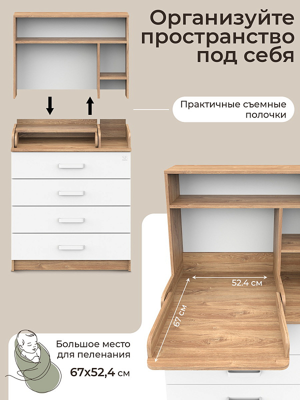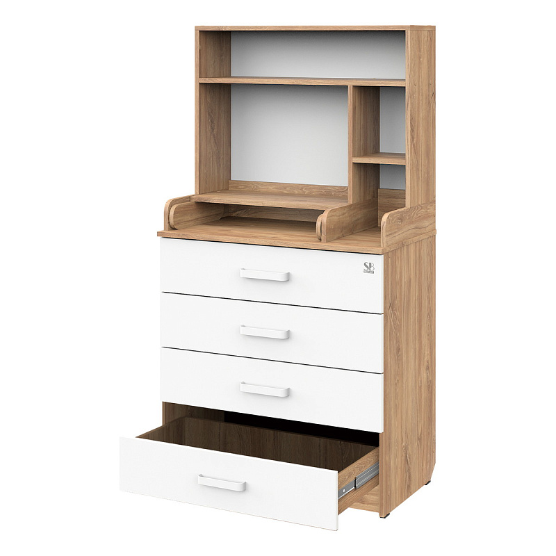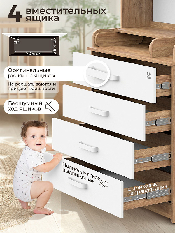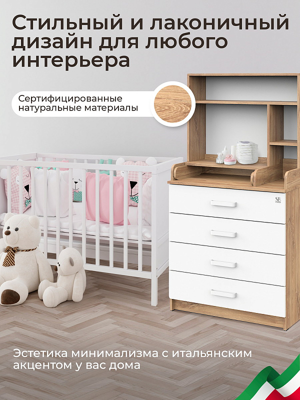 Sweet Baby выпустил удобный комод с полкой Sweet Baby Albero, комод шириной 80 см с откидным пеленальным столиком и четырьмя вместительными ящиками для хранения.