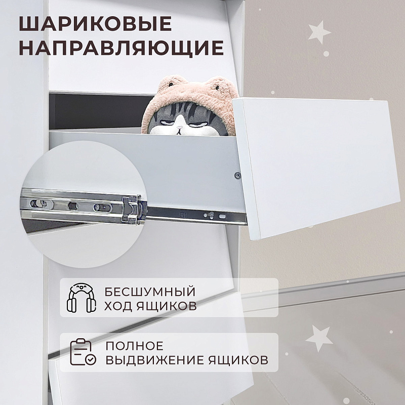 - 4 вместительных ящика на шариковых направвляющих способны выдержать большую нагрузку