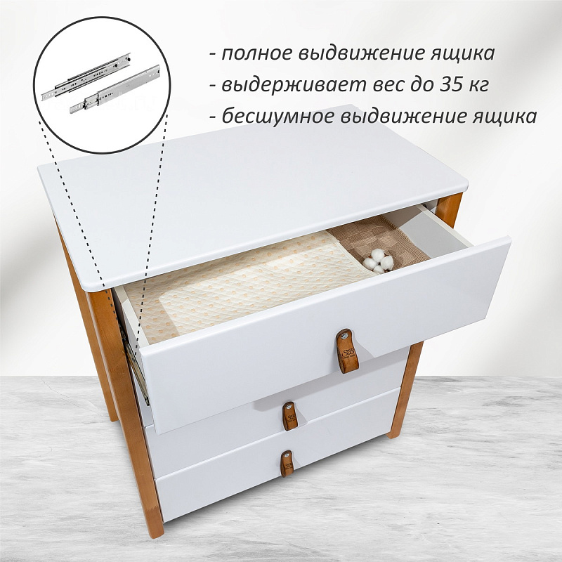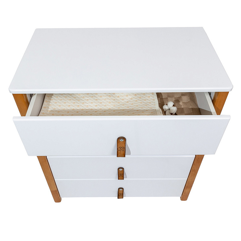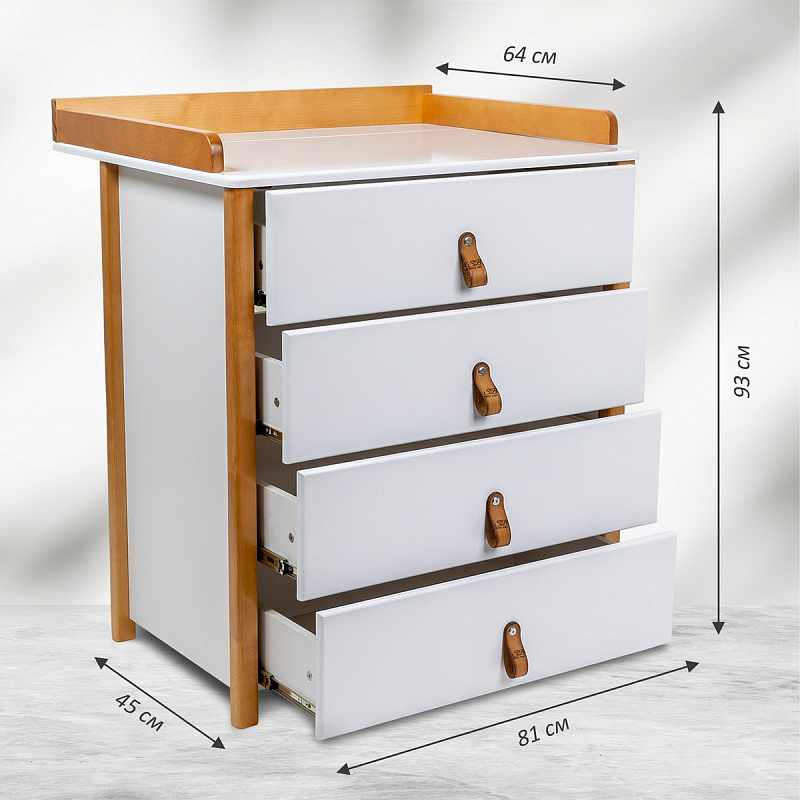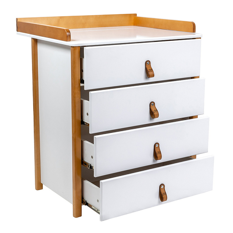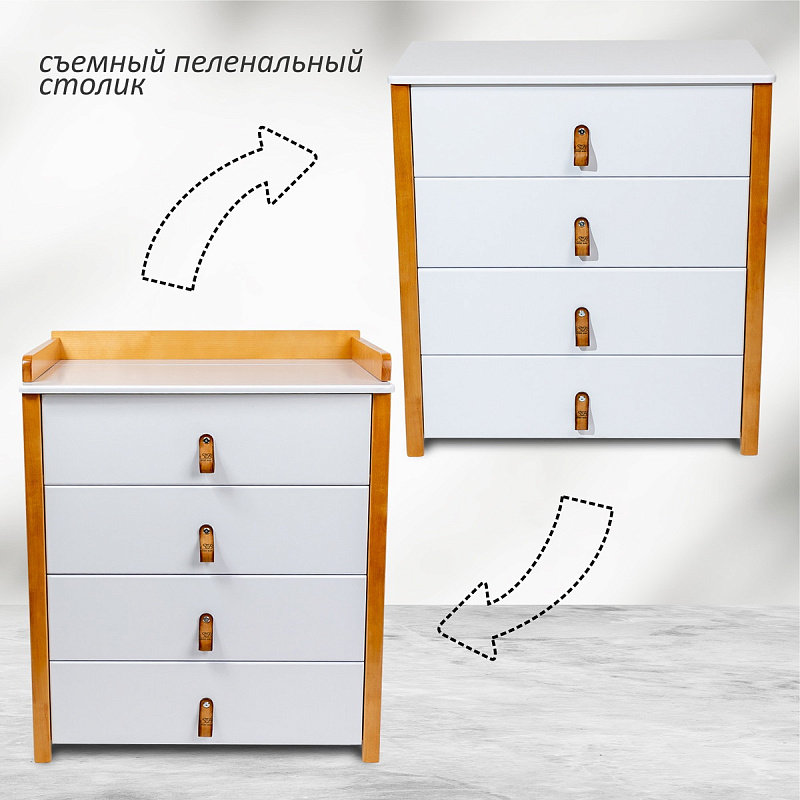 Красивый и стильный комод выполненный в скандинавском стиле. Комод оригинально смотрится и прекрасно впишется в любой интерьер. Пеленальная поверхность легко снимается, превращая комод в полноценное место для хранения вещей. Современные лакокрасочные материалы, использованные в отделке, нетоксичны и долговечны, а конструкция не имеет острых углов, что не только «смягчает» ее очертания, но и бережет малыша от случайных травм.