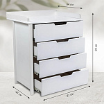 Стильный комод выполнен в скандинавском стиле. Комод оригинально смотрится и прекрасно впишется в любой интерьер. Современные лакокрасочные материалы, использованные в отделке, нетоксичны и долговечны, а конструкция не имеет острых углов, что не только «смягчает» ее очертания, но и бережет малыша от случайных травм.
