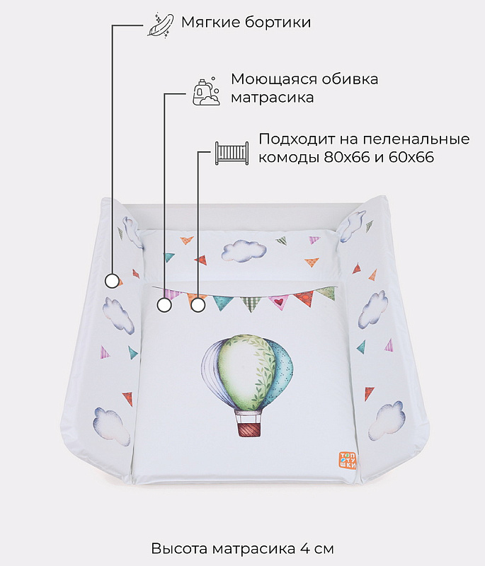Пеленальный матрасик Топотушки Воздушные шары 80х71 см