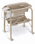 Ванночка располагается прямо под съемным матрасиком. Рассчитана на детей до 12 месяцев, подстраивается под разный возраст, так как с одной стороны находится сиденье под наклоном для малышей от 0 до 6 месяцев, а с другой стороны - сидения с подлокотниками для деток постарше. Быстрый слив воды обеспечивается благодаря встроенному шлангу. Складывается без особого труда одним простым движением. На нижней полке можете заметить специальную ручку, потянув за которую получите сложенный вариант конструкции.