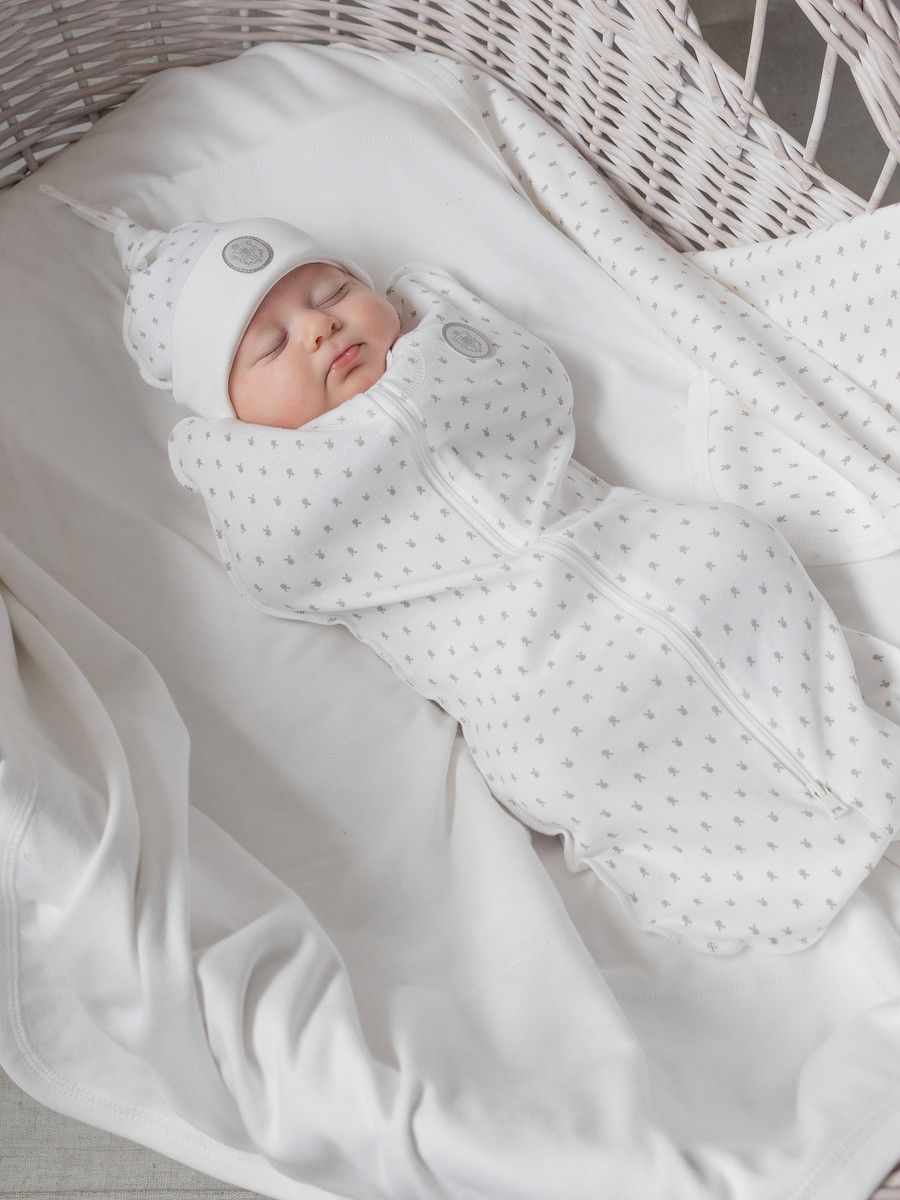 Пеленка-кокон и шапочка НаследникЪ Выжанова Зайка серый 01059-02005 ЧЗ 62