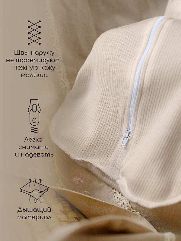 Пеленка-кокон подарит чувство комфорта и безопасности крохе, упростит процесс пеленания, а молния позволит проверить подгузник, не разбудив ребёнка.