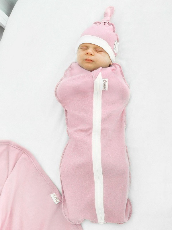 Пеленка-кокон на молнии Amarobaby Nature Essence розовый с шапочкой 56