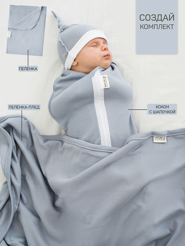 Удобная форма кокона ласково зафиксирует малыша внутри так, что ручки будут надежно сложены вдоль туловища, а ножки прижаты друг к другу. Пеленка- кокон подарит сладкий сон, а шапочка укроет голову младенца, создавая уютный милый образ спящему крохе.