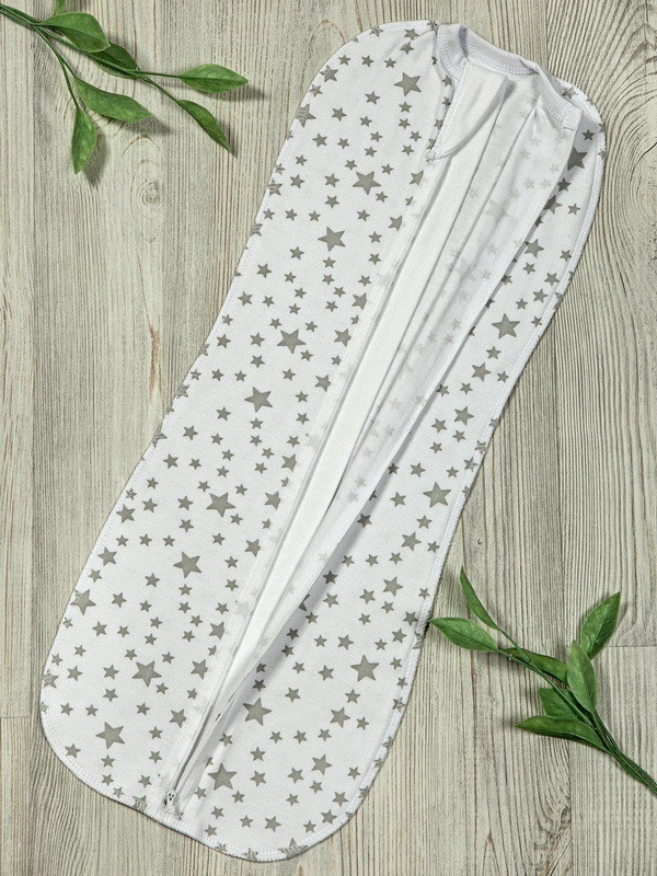 Пеленка-кокон изготовлена из натурального хлопка. Удобная форма словно обволакивает тело ребенка и предотвращает "вскидывание" ручек и ножек во время сна. Молния по всей длине оснащена защитной подкладкой из ткани.