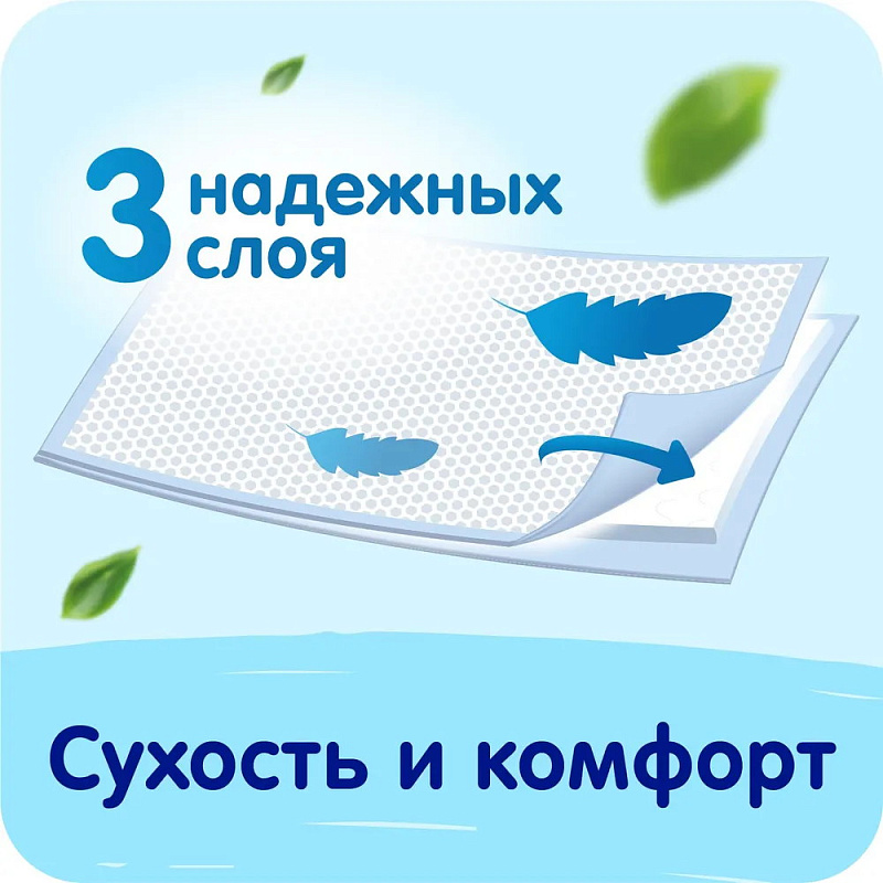 Хотите, чтобы малыш спал спокойным, здоровым сном без подгузников? Нетканый гипоаллергенный материал, из которого изготовлены непромокаемые пелёнки, надёжно впитывает и удерживает жидкость, обеспечивая комфорт на протяжении всего дня и ночи. Усиленная защита от протечек обеспечит приятный сон без пробуждений – а стопроцентная распушенная целлюлоза позволит коже малыша свободно дышать, сохраняя её здоровье и чистоту.