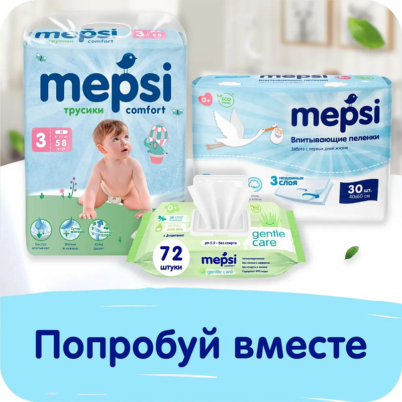 Пеленки одноразовые впитывающие для ухода за детьми, взрослыми и лежачими больными Mepsi отлично подходят для пеленания, кормления и дополнительной защиты кроватки или коляски, в которой спит малыш. Пелёнки для новорожденных Mepsi совершенно не пропускают влагу, поэтому их можно использовать как подстилку на диван, кровать или кресло: их супервпитывающие свойства гарантированно сохранят мебель сухой и чистой.