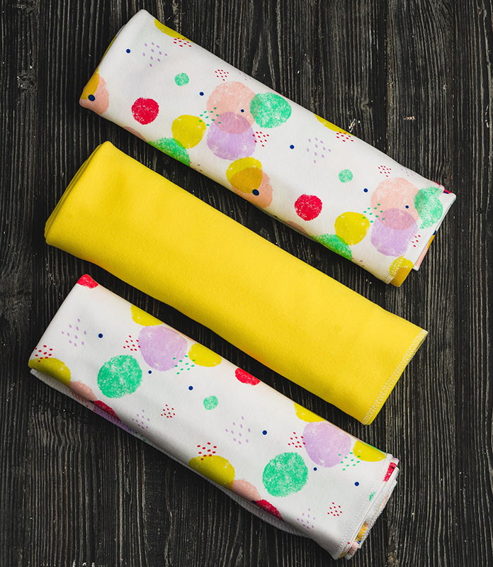 - 2 пелёнки украшены рисунками, 1 пелёнка однотонного цвета