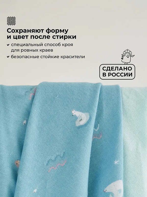 Набор состоит из пелёнки с рисунком и двух однотонных.