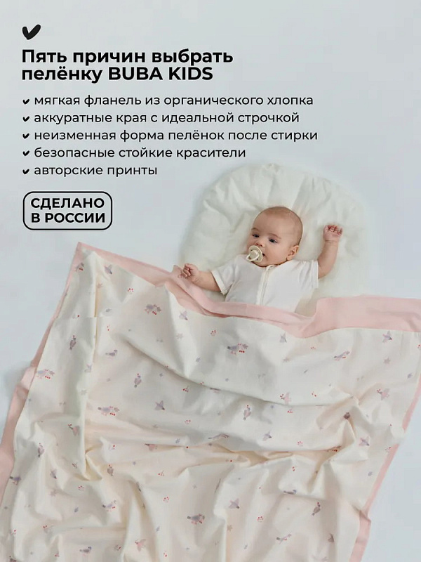 Фланелевые пелёнки выполнены из гипоаллергенного органического хлопка – самого подходящего для нежной и чувствительной кожи ребенка материала.
