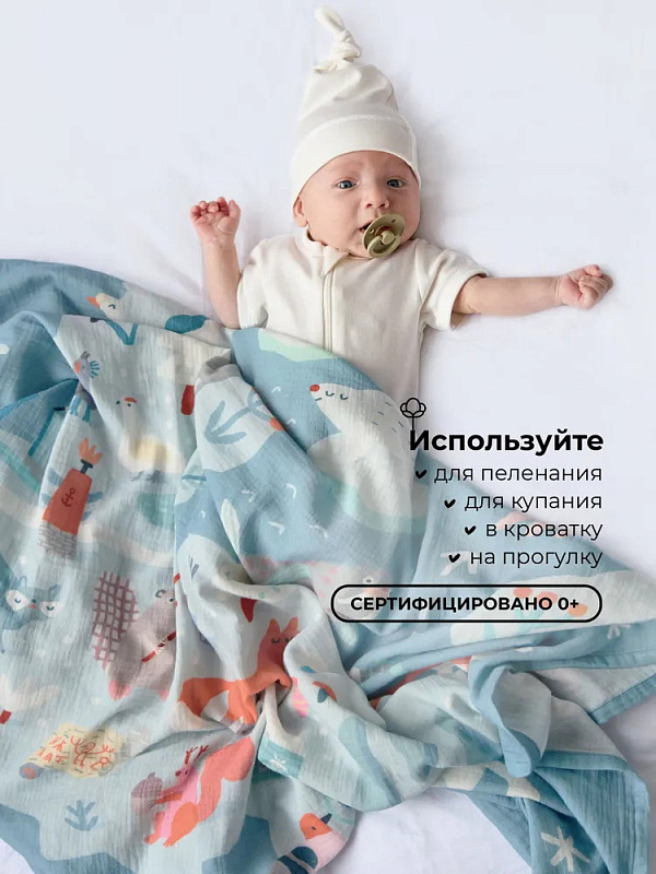 Муслиновая пелёнка выполнена из органического хлопка. Лёгкая воздухопроницаемая ткань идеально подходит для нежной детской кожи: мягкая и приятная к телу, хорошо впитывает влагу и быстро сохнет, не вызывает аллергических реакций.