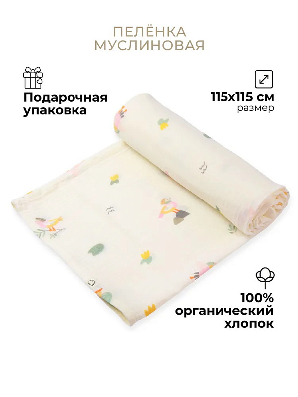 Пелёнка муслиновая Buba Kids, 115х115 см BKMUSSW28 Утка-мандаринка