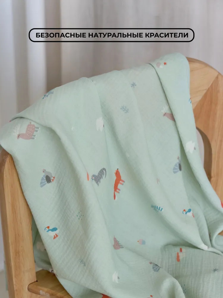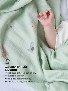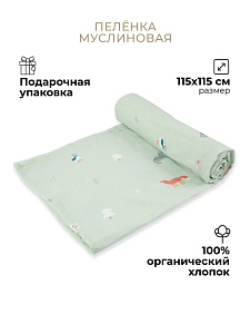 Муслиновая пелёнка выполнена из органического хлопка. Лёгкая воздухопроницаемая ткань идеально подходит для нежной детской кожи: мягкая и приятная к телу, хорошо впитывает влагу и быстро сохнет, не вызывает аллергических реакций.