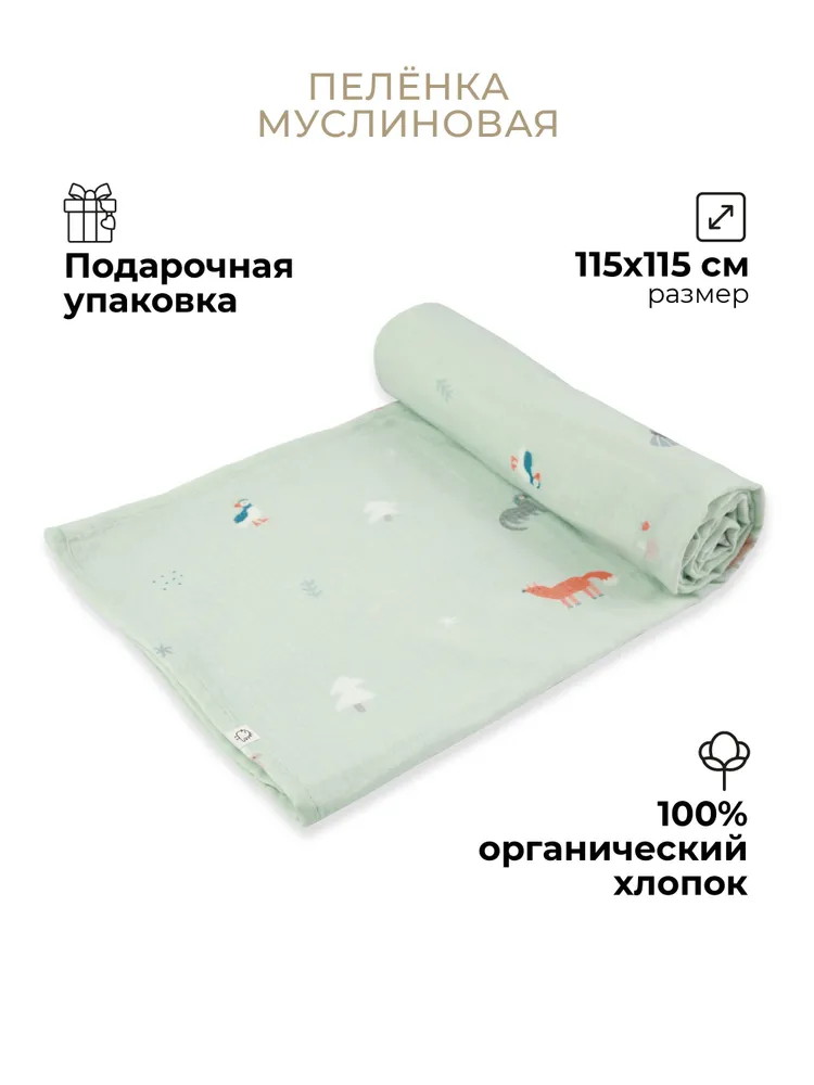 Пелёнка муслиновая Buba Kids, 115х115 см BKMUSSW32 Северный лес