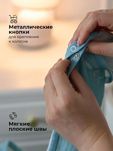 с помощью специально разработанных кнопок закрепить на коляске для защиты от ветра, ультрафиолета и насекомых;
