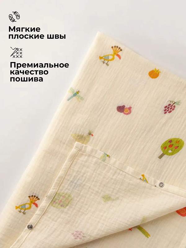 Несмотря на свою воздушность, муслин прочный и долговечный, с каждой стиркой становится только мягче. Пелёнки изготовлены с плоскими деликатными швами и с использованием безопасных натуральных красителей.