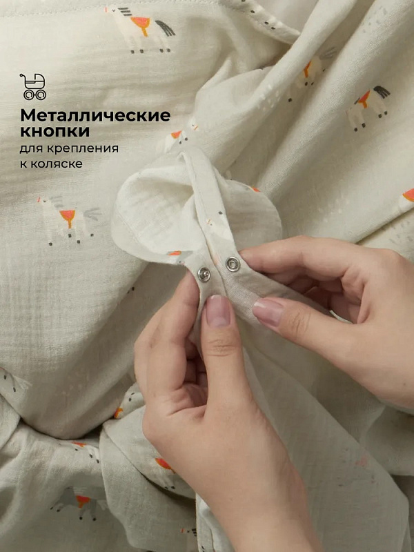 с помощью специально разработанных кнопок закрепить на коляске для защиты от ветра, ультрафиолета и насекомых;