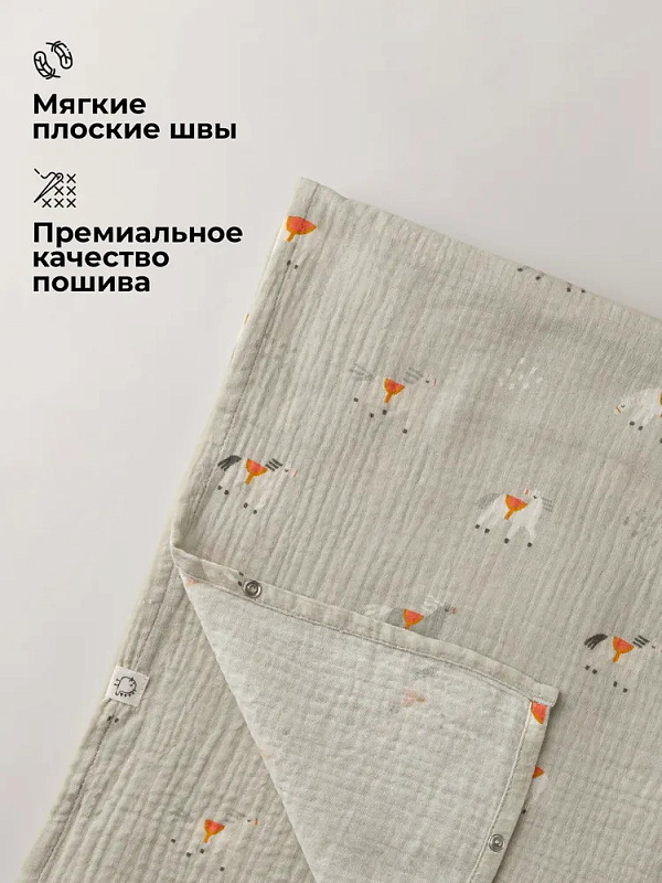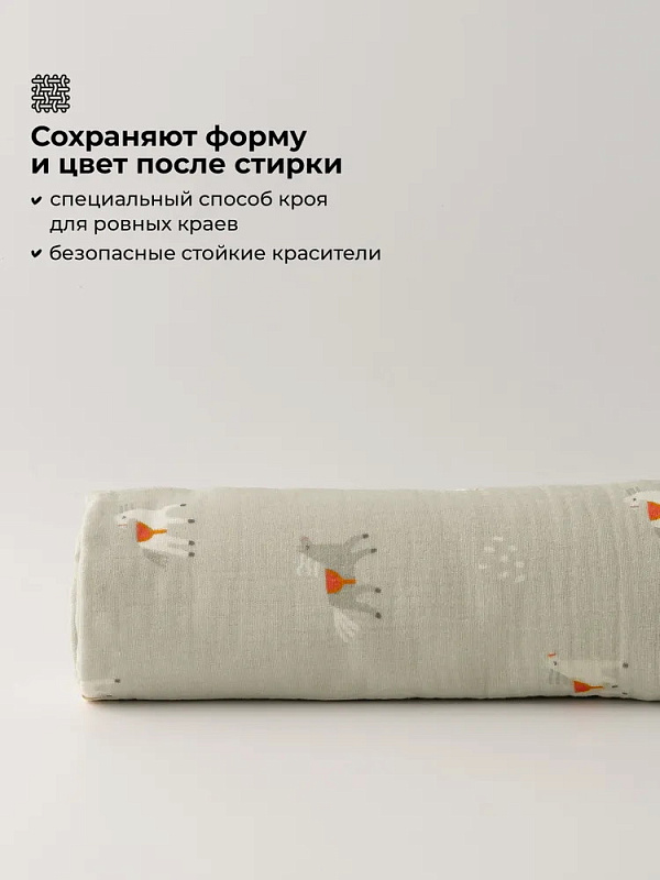 Несмотря на свою воздушность, муслин прочный и долговечный, с каждой стиркой становится только мягче. Пелёнки изготовлены с плоскими деликатными швами и с использованием безопасных натуральных красителей.