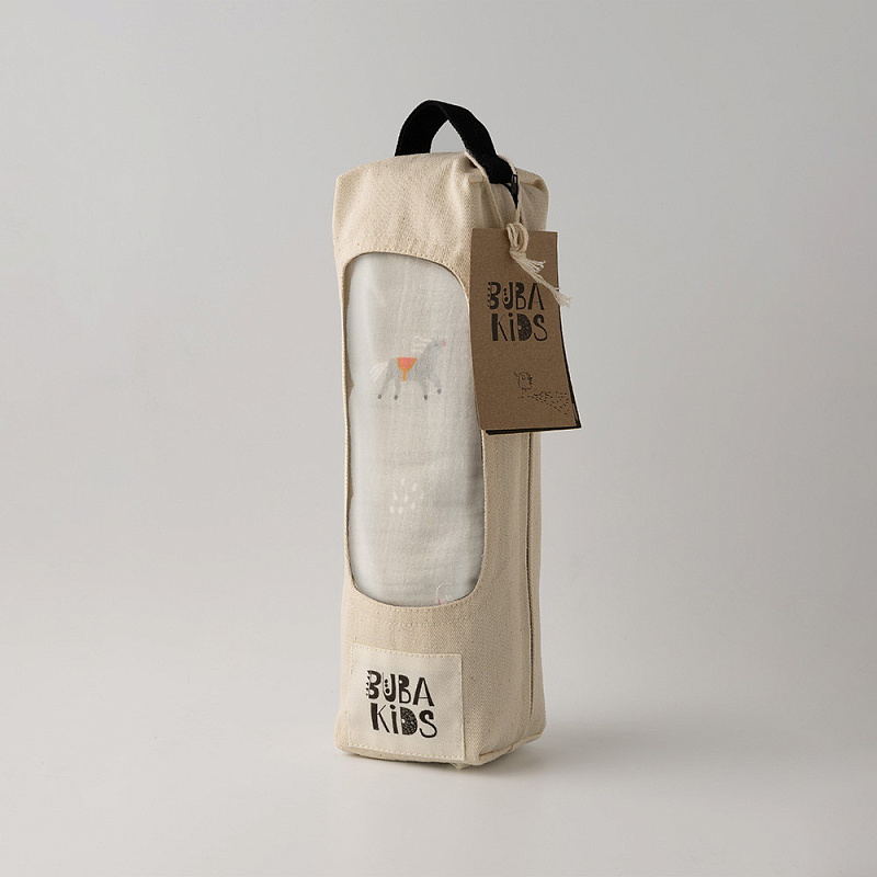 Пелёнка оригинально и красиво упакована, и может послужить отличным подарком. Практичный чехол-сумочка на молнии выполнен из 100% хлопка – саржи. Окошко демонстрирует цвет и принт пелёнки.