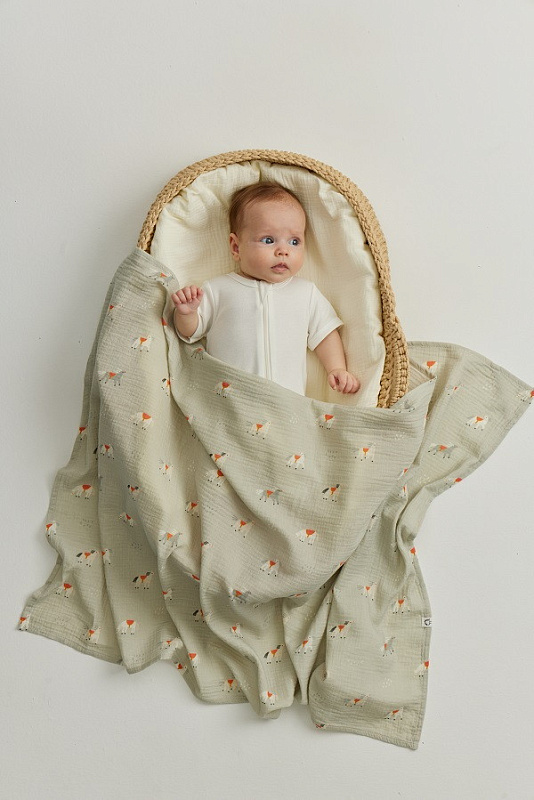Муслиновая пелёнка выполнена из органического хлопка. Лёгкая воздухопроницаемая ткань идеально подходит для нежной детской кожи: мягкая и приятная к телу, хорошо впитывает влагу и быстро сохнет, не вызывает аллергических реакций.