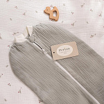 Материал кокона - высококачественный двухслойный жатый муслин, 100% эко хлопок. Он легкий, воздушный и невероятно приятный на ощупь. Муслин прекрасно впитывает влагу, быстро сохнет и сохраняет свою мягкость и цвет даже после множества стирок. Подкладка спальника выполнена так же из двухслойного муслина. Все швы спрятаны внутрь, что делает использование спальника более комфортным и безопасным.