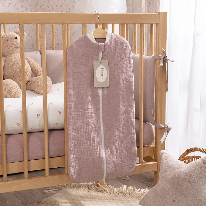 Материал кокона - высококачественный двухслойный жатый муслин, 100% эко хлопок. Он легкий, воздушный и невероятно приятный на ощупь. Муслин прекрасно впитывает влагу, быстро сохнет и сохраняет свою мягкость и цвет даже после множества стирок. Подкладка спальника выполнена так же из двухслойного муслина. Все швы спрятаны внутрь, что делает использование спальника более комфортным и безопасным.