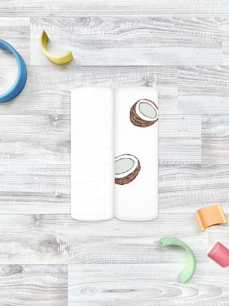 Пелёнки Mjolk муслиновые 2 шт 110х110 см Кокосы/White