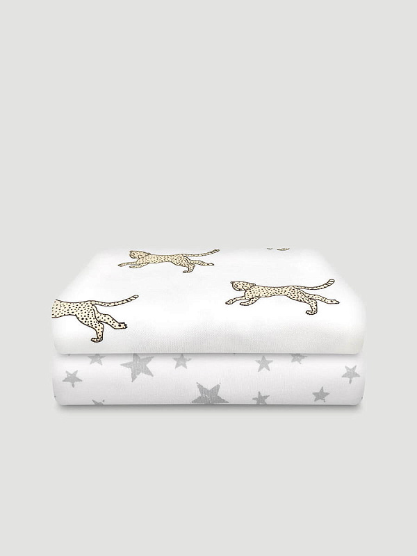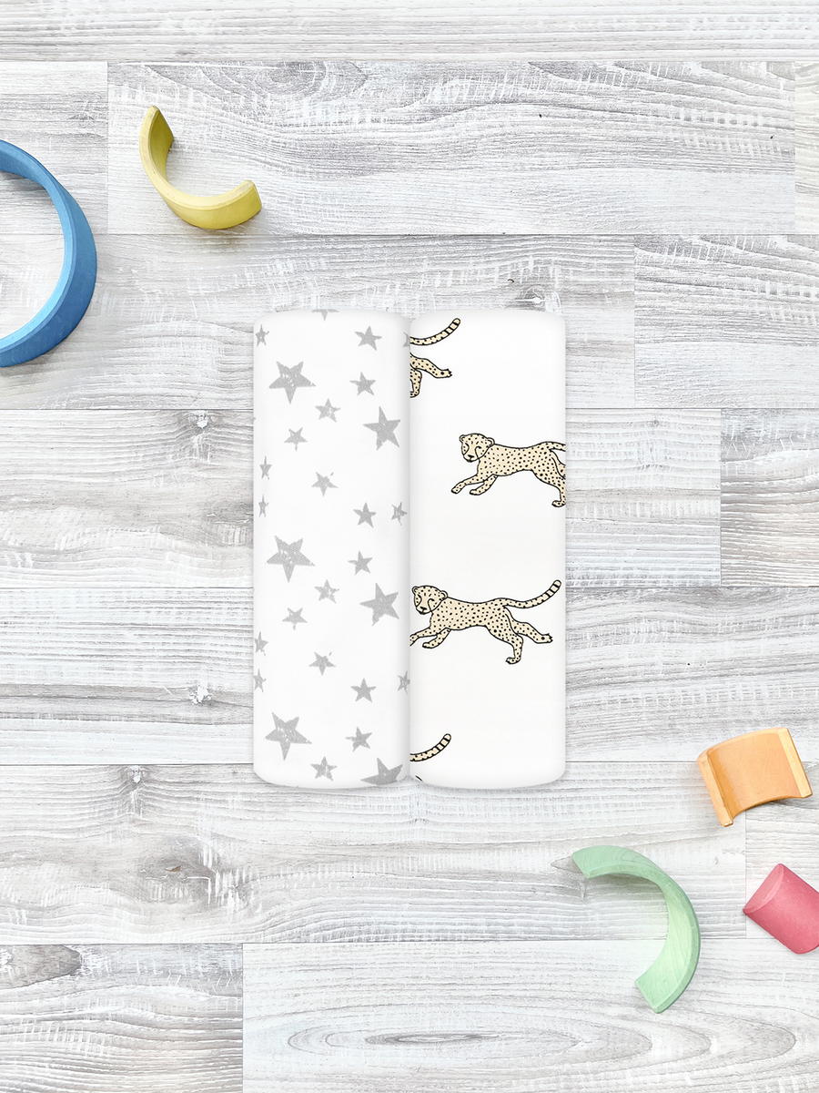 Пелёнки Mjolk трикотажные 2 шт 120х85 см Гепарды/Звёзды