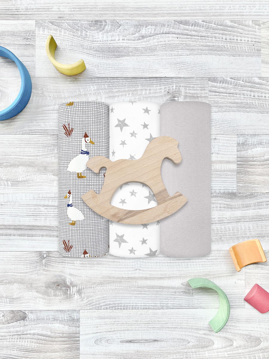 Пелёнки Mjolk трикотажные 3 шт 120х85 см Гуси/White Sand/Звёзды